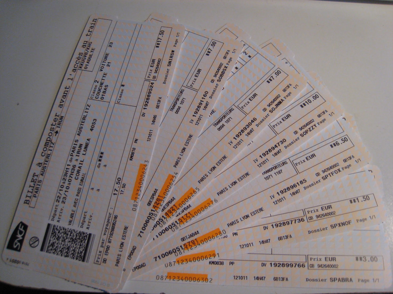 最終的に、ご覧のように合計7枚の切符。